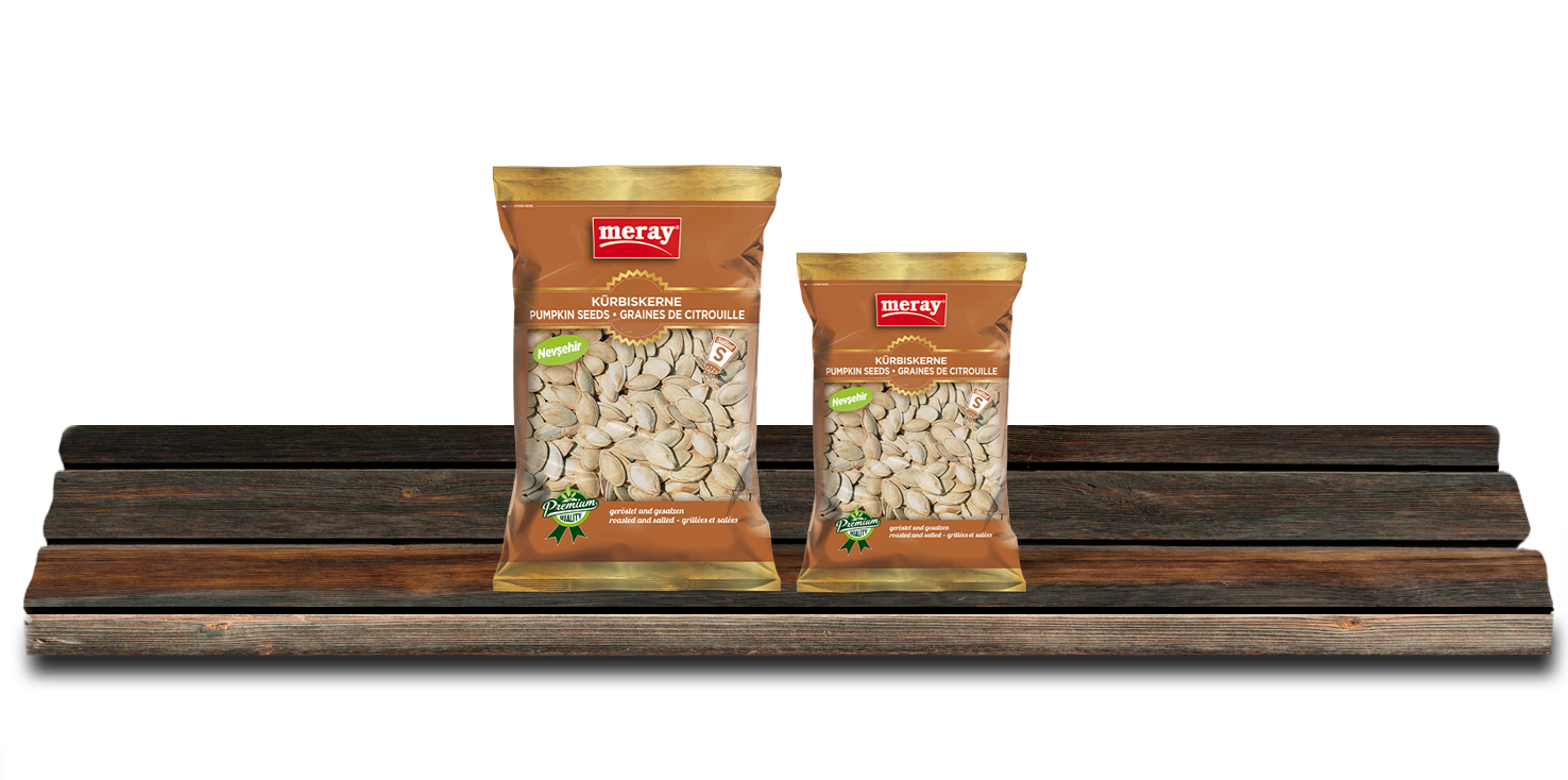Remove Meray’s white, lightly salted jumbo pumpkin seeds from their shells and enjoy this especially Mediterranean snack!